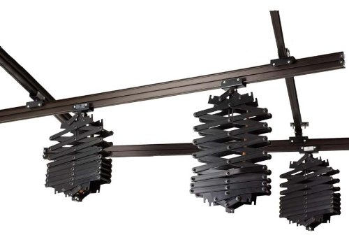 Schaffen Sie Platz im Fotostudio. Hängen Sie einfach alles an die Decke. Das Deckenschienensystem erleichtert die Arbeit im Fotostudio enorm. Stative und Kabel, die früher zu Stolperfallen wurden, gehören nun der Vergangenheit an. Die Scheren erlauben einen stufenlosen Auszug bis max. 200cm, damit auch am Boden stehende, kleinere Objekte ohne Probleme fotografiert werden können. Die 5/8 Zoll Spigots sind für alle üblichen Studioleuchten und Studioblitze geeignet. Durch leichtgängige Führungswagen können Sie die Scheren einfach hin- und herschieben und somit ohne Kraftaufwand in die von Ihnen gewünschte Position bringen. Die Scherenfedern sind aus Edelstahl gefertigt.Bitte beachten Sie, dass die Decke, an der Sie das System anbringen von hoher Stabilität ist.